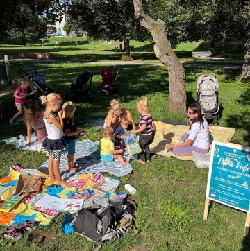 První schůzka se uskutečnila na začátku května, neb v této době začíná být počasí stabilnější, přes den už je teplo a dá se vydržet sedět na dece. Nevěděla jsem, jestli někdo přijde. Byla jsem zvědavá, jak se nám to poskládá, jaké ženy dorazí (pokud dorazí) a jestli na sebe nebudeme v trapně hledět a po chvíli s výmluvou neodejdeme. Nikdy jsem se do ničeho podobného nepustila, byla to moje premiéra, překonala jsem svůj strach a obavu z neúspěchu, protože mi to dávalo obrovský smysl. V den prvního setkání nám krásně vyšlo počasí, postavila jsem áčko s plakátem akce Dáme kafe, od devíti jsem „stála na značkách“ a vyhlížela, která žena jen jde s dítkem na pískoviště a kdo jde na domluvenou akci. Nakonec se nás sešlo šest žen, osm dětí a bylo to moc fajn.